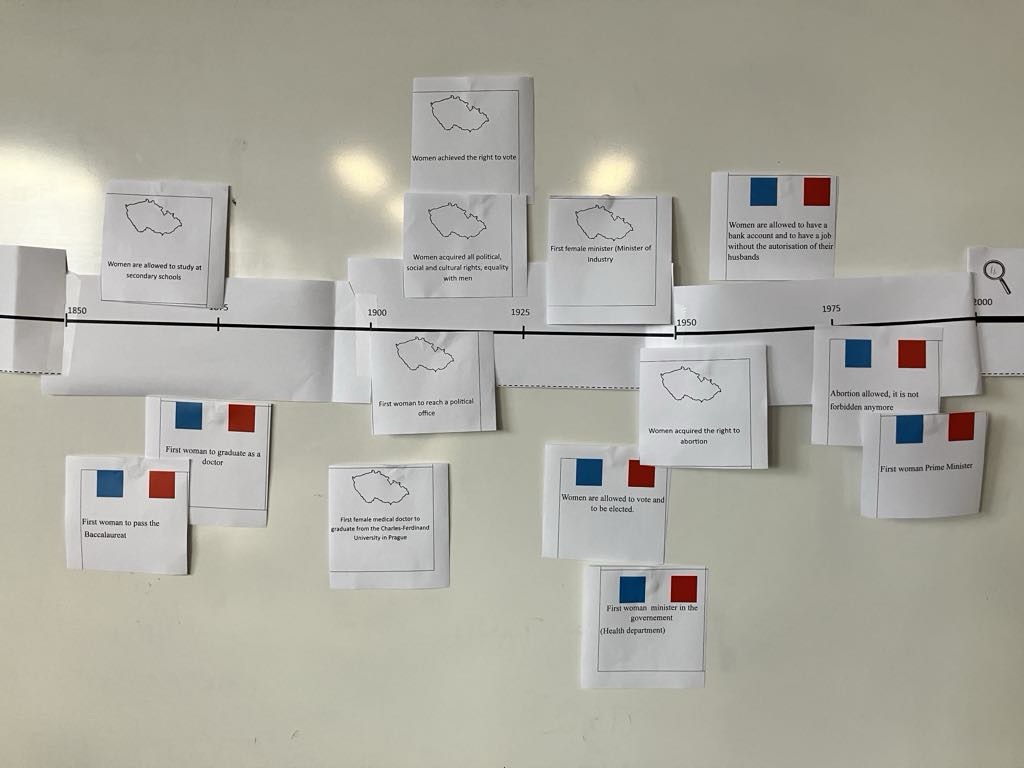 Vývoj ženských práv v ČR a Francii na časové ose, zhodnocení a zakončení první části projektu a komentovaná prohlídka horské poutní kaple Font Romeu.