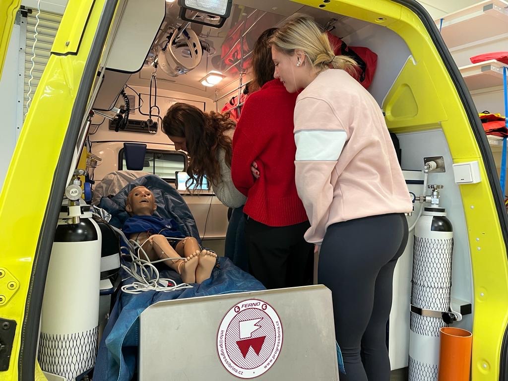Studenti navštívili laboratoře modelu BOO, plastinátů,robotické rehabilitace , sanitky a biomechaniky