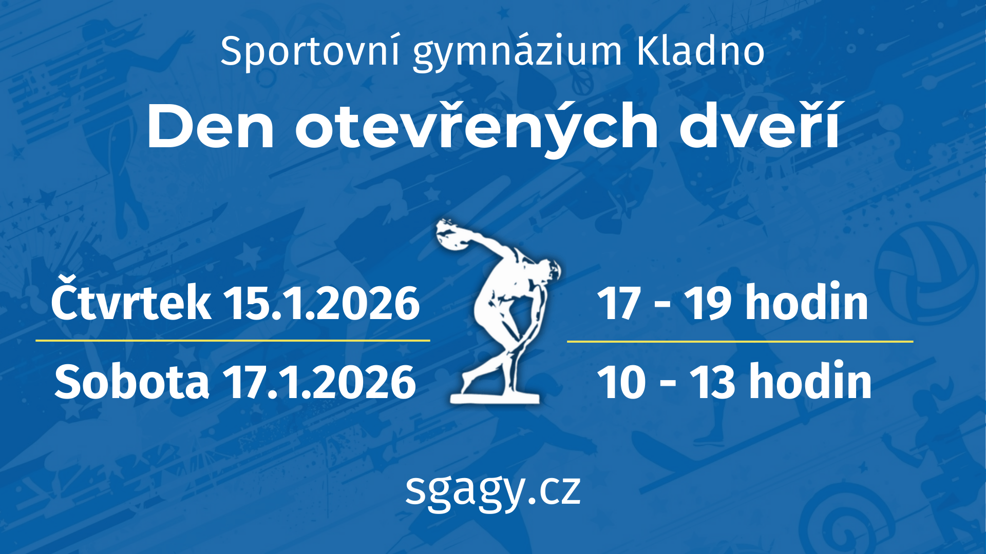 Sportovní gymnázium Kladno zve všechny zájemce o studium, jejich rodiče i veřejnost na Den otevřených dveří, který se uskuteční: